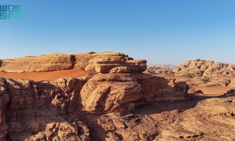 تنفرد منطقة تبوك بوجود إطلالات صحراوية آسرة، تطل على فضاءات مفتوحة من الجمال، وتكشف للزائر مشاهد تمتد بلا حدود بين الرمل والجبال التي لا يكتفي معها الزائر بمشاهدة المكان فحسب، بل يعيش لحظة كاملة من السكون والدهشة التي تتبدل فيها زاوية النظر، وتعيد الصحراء تعريف جمالها من علوٍ آسر، وهدوء يملأ المكان سكينة.