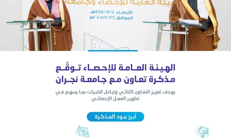 الهيئة العامة للإحصاء وجامعة نجران توقّعان مذكرة تعاون