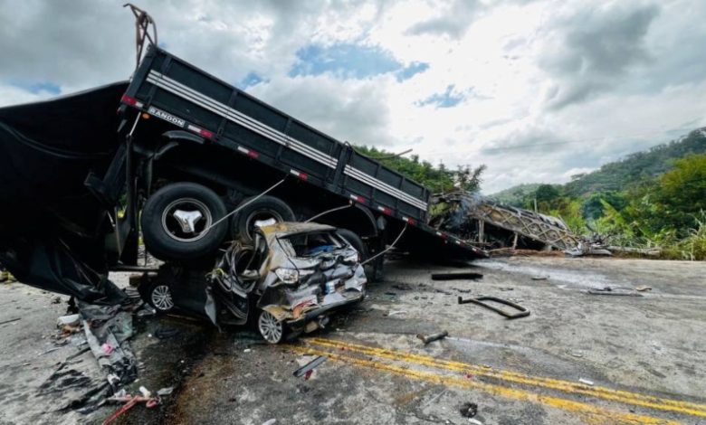 واصطدمت شاحنة بيك أب من طراز شفروليه إس10 وسيارة فيات دوبلو وجهًا لوجه على الطريق الاتحادي السريع بي آر-101 بالقرب من مدينة موكوري في جنوب ولاية باهيا، حيث اشتعلت النيران في كلتا المركبتين بعد حادث التصادم الذي تعتقد الشرطة أنه نجم عن محاولة تجاوز غير آمنة من قبل أحد السائقين.