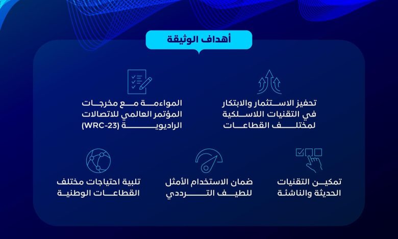 وأوضحت أن التحديثات المقترحة على الخطة تتضمن عدة جوانب رئيسية، تشمل التعديلات على مواد الوثيقة وأهدافها وهيكل الجدول الوطني لتوزيع الترددات، والتحديثات على آلية الوصول للنطاقات الترددية بما يتواءم مع الاحتياجات الوطنية والطلب المتزايد للوصول إلى الطيف الترددي، إضافة إلى التحديثات على التوزيعات الوطنية، بما يتماشى مع الاتفاقيات الدولية المعتمدة وفقًا للوائح الراديو الدولية الصادرة عن الاتحاد الدولي للاتصالات.
