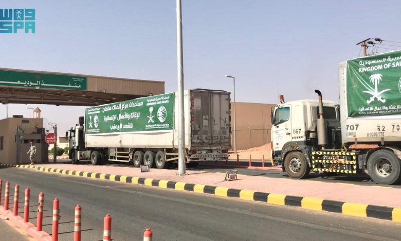 عبور 70 شاحنة مقدمة من مركز الملك سلمان للإغاثة منفذ الوديعة الحدودي متوجهة إلى اليمن
