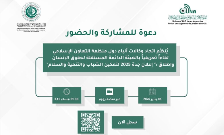وأكد المدير العام لاتحاد وكالات أنباء دول منظمة التعاون الإسلامي محمد بن عبد ربه في كلمة افتتاحية، حرص الهيئة الدائمة المستقلة لحقوق الإنسان على تفعيل أدوارها الإعلامية، والإسهام في التعريف بواحد من أبرز مخرجاتها، ألا وهو “إعلان جدة 2025″ لتمكين الشباب والتنمية والسلام” الذي يمثل إطار عمل جامعًا وشاملًا لصياغة السياسات المتعلقة بالشباب في دول منظمة التعاون الإسلامي.