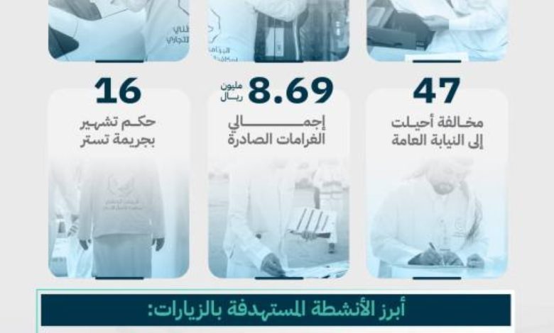 وشهد العام 2025م إحالة (724) مخالفة إلى لجنة النظر في مخالفات نظام مكافحة التستر، فيما بلغ إجمالي الغرامات الصادرة بحق المخالفين (8.69) ملايين ريال.