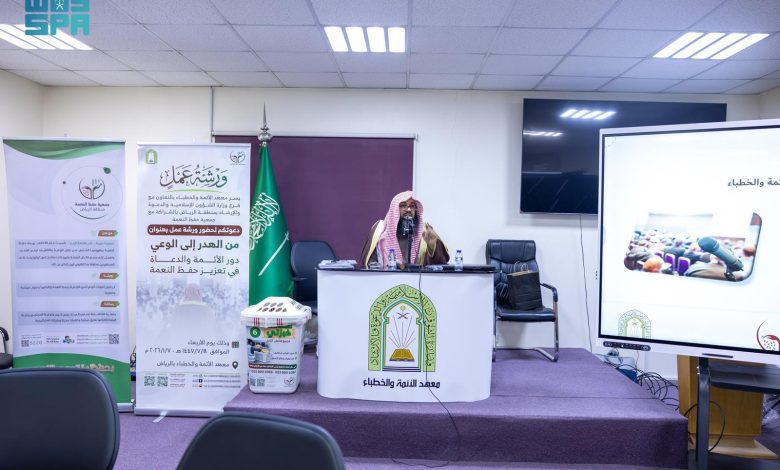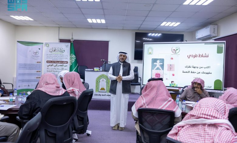نفذت وزارة الشؤون الإسلامية والدعوة والإرشاد، ممثلةً بمعهد الأئمة والخطباء، بالتعاون مع جمعية حفظ النعمة بالرياض (نعمة)، أمس، ورشة عمل بعنوان: “من الهدر إلى الوعي دور الأئمة والدعاة في تعزيز حفظ النعمة”، وذلك بمقر المعهد، وبحضور (80) إمامًا وخطيبًا وداعية.