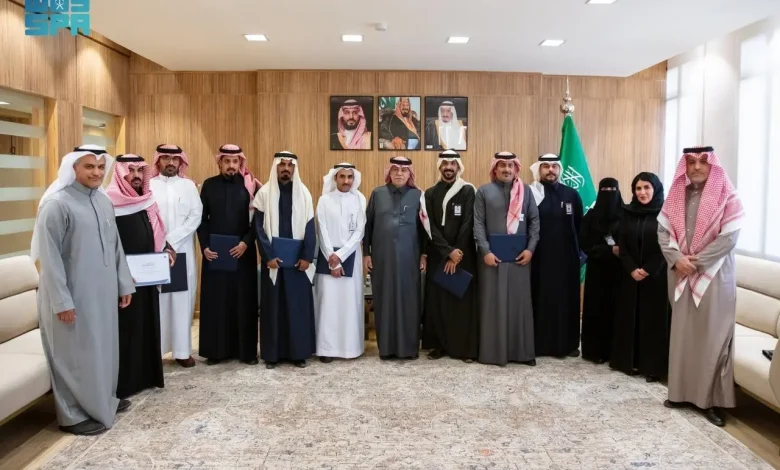كرم معالي وزير التجارة الدكتور ماجد بن عبدالله القصبي بمقر الوزارة في الرياض اليوم، مأموري الضبط القضائي المتميزين نظير أداءهم في ضبط مخالفات الغش التجاري، ومعالجة بلاغات وشكاوى المستهلكين.