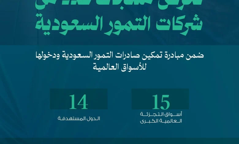جاء ذلك خلال إعلان المركز، نتائج مبادرة تمكين صادرات التمور السعودية ودخولها للأسواق العالمية، التي تهدف إلى دعم شركات التمور السعودية في توسيع نطاق صادراتها، وتعزيز حضورها في الأسواق العالمية، إضافة إلى تمكينها من الوصول إلى الأسواق المستهدفة عالميًا.