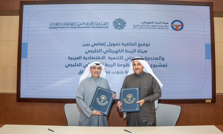 وقعت هيئة الربط الكهربائي لدول مجلس التعاون لدول الخليج العربية والصندوق الكويتي للتنمية الاقتصادية العربية اليوم، اتفاقية قرض إضافي، يقدم بمقتضاها الصندوق قرضًا مقداره 8 ملايين دينار كويتي، (أي ما يعادل حوالي 25.5 مليون دولار أمريكي)؛ للإسهام في تمويل مشروع تعزيز منظومة الربط الكهربائي الخليجي، والربط بشبكة جنوب العراق.