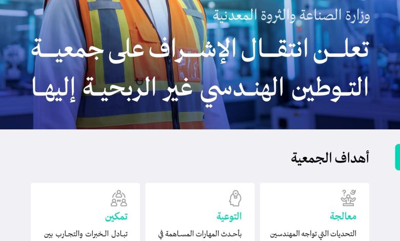 أعلنت وزارة الصناعة والثروة المعدنية، انتقال الإشراف على جمعية التوطين الهندسي غير الربحية من وزارة الموارد البشرية والتنمية الاجتماعية إليها، في خطوة محورية تواكب جهود الوزارة لتمكين المنظمات غير الربحية ذات الارتباط بقطاعي الصناعة والتعدين، وتعظيم أثرها في التنمية الاقتصادية والاجتماعية.