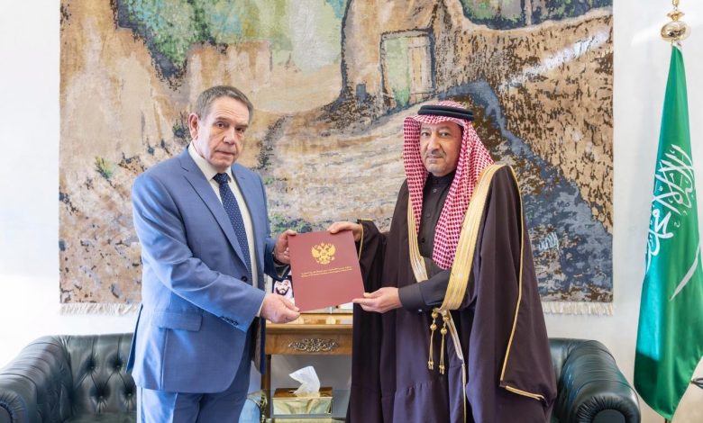 تسلم الرسالة معالي نائب وزير الخارجية المهندس وليد بن عبدالكريم الخريجي، خلال استقباله، في مقر الوزارة بالرياض اليوم، سفير روسيا الاتحادية لدى المملكة سيرجي كوزلوف.