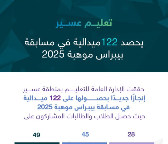 “تعليم عسير” يحقق (122) ميدالية في بيبراس موهبة 2025