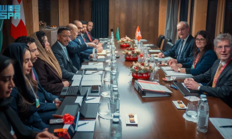 وجرى خلال الاجتماع بحث سبل تعزيز التعاون الثنائي والعلاقات الاستثمارية والتجارية بين المملكة وسويسرا.