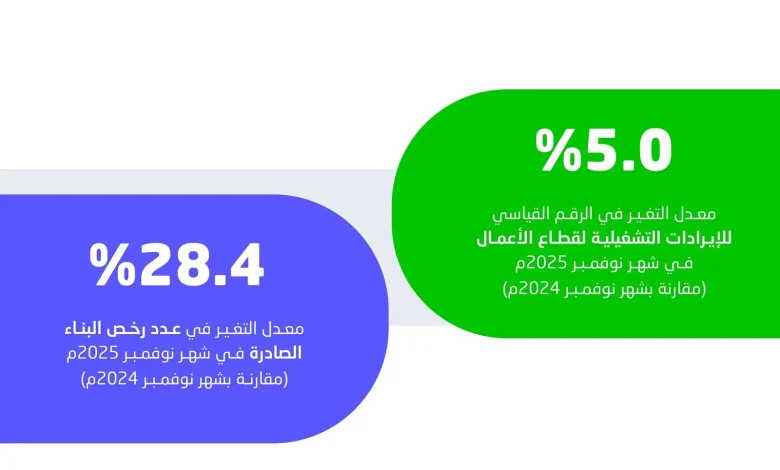 ووفقًا لنتائج النشرة، سجّل الرقم القياسي للإيرادات التشغيلية للأعمال قصيرة المدى في المملكة ارتفاعًا بلغت نسبته 5.0% خلال شهر نوفمبر 2025م مقارنةً بالشهر المماثل من عام 2024م؛ ويُعزى هذا الارتفاع بشكل رئيس إلى نمو عددٍ من الأنشطة الاقتصادية، من أبرزها نشاط الصناعة التحويلية الذي ارتفع بنسبة 6.5%، ونشاط تجارة الجملة والتجزئة وإصلاح المركبات الذي سجّل ارتفاعًا بنسبة 9.5%، إضافةً إلى ارتفاع نشاط التشييد بنسبة 7.4%، وارتفاع الأنشطة المالية وأنشطة التأمين وأنشطة المعلومات والاتصالات بنسبة 14.4% و8.6% على التوالي.