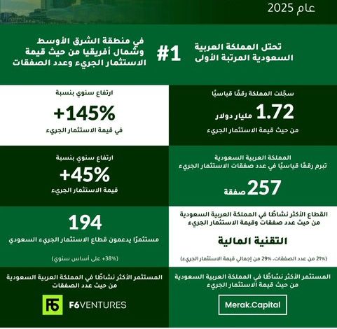 وأوضح التقرير أن إجمالي الاستثمار الجريء في المملكة بلغ 1.72 مليار دولار خلال عام 2025م، فيما ارتفع عدد الصفقات إلى 257 صفقة، وهو أعلى مستوى يُسجل تاريخيًا، بما يعكس النمو المتسارع الذي تشهده السوق السعودية وترسّخ مكانتها بوصفها السوق الأكبر في المنطقة.