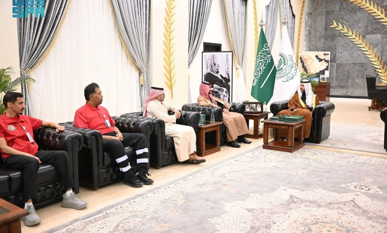 وتسلّم سموّه خلال الاستقبال التقرير السنوي لأعمال فرع الهيئة لعام 2025م، الذي تضمّن برامج الخدمات الإسعافية وآلية استقبال البلاغات، وجهود الهيئة في مجالات التطوع والتدريب، إضافة إلى مشروع معاذ.