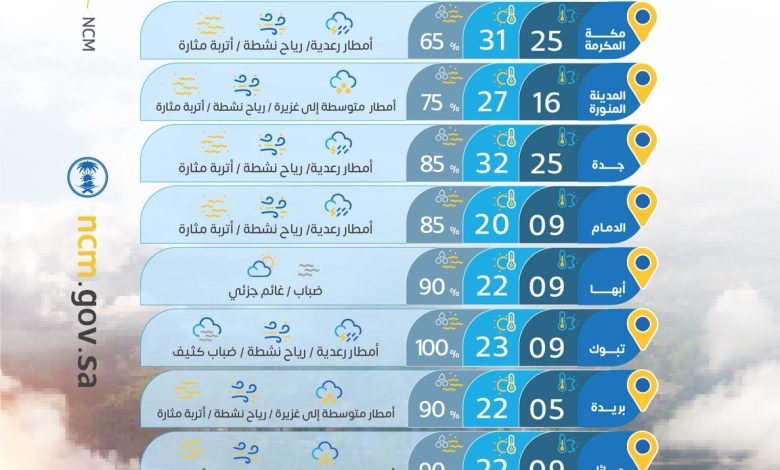 أمطار متوسطة على منطقة المدينة المنورة