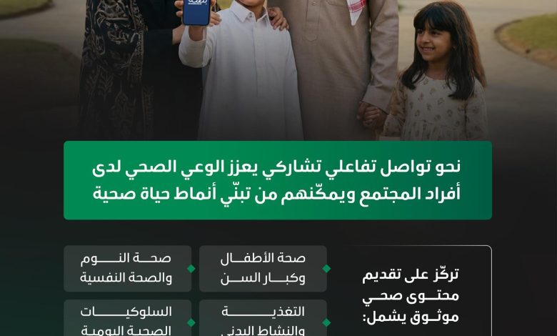 يذكر أن “عش بصحة” قد أطلقت وشاركت في العديد من المبادرات والحملات، من أبرزها “امش 30″، و”صُم بصحّة”، و”بين قيم وقيم”، و”فسحة عِش بصحّة”، إضافة إلى مبادرة “صنّاع الوعي” التي أُطلقت خلال ملتقى الصحة العالمي 2025، دعمًا لصنّاع المحتوى الصحي وتعزيزًا لأثر التوعية الصحية الرقمية.
