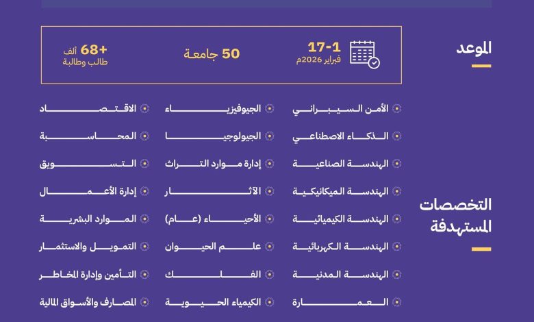 تُطلق هيئة تقويم التعليم والتدريب للسنة الرابعة على التوالي، الاختبارات المعيارية لخريجي الجامعات والكليات السعودية، ضمن برنامج “جاهزية”، الذي تنفذه بالتكامل مع مجلس شؤون الجامعات؛ لضمان وضبط جودة مخرجات الجامعات، ورفع جاهزية خريجيها لسوق العمل، والإسهام في تحقيق مستهدفات رؤية المملكة 2030، وبرنامج تنمية القدرات البشرية، وإعداد مواطن منافس عالميًّا ومتميز علميًّا ومهاريًّا، ويستهدف البرنامج في هذا العام عقد اختبارات معيارية لـ51 تخصصًّا جامعيًّا، خلال الفترة من 1 إلى 17 فبراير 2026م.