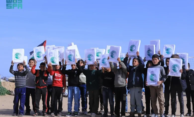 مركز الملك سلمان للإغاثة يوزّع ملابس شتوية على الطلاب في خان يونس