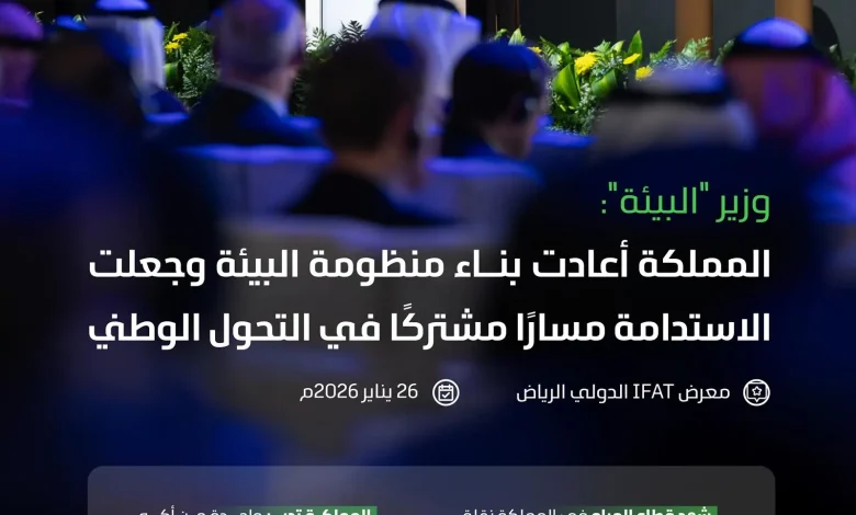 جاء ذلك خلال كلمة معاليه اليوم في افتتاح أعمال مؤتمر ومعرض IFAT السعودية 2026، المقام في العاصمة الرياض, بحضور نخبة قيادات الاقتصاد الدائري وصنّاع القرار والخبراء والمستثمرين من مختلف دول العالم.