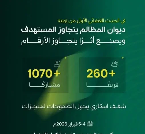 أكثر من 1000 مبتكر يتقدمون لهاكاثون ذكاء القضاء بديوان المظالم