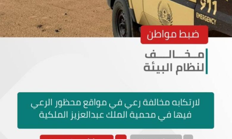 “الأمن البيئي” يضبط مخالفًا لنظام البيئة لارتكابه مخالفة رعي في محمية الملك عبدالعزيز الملكية
