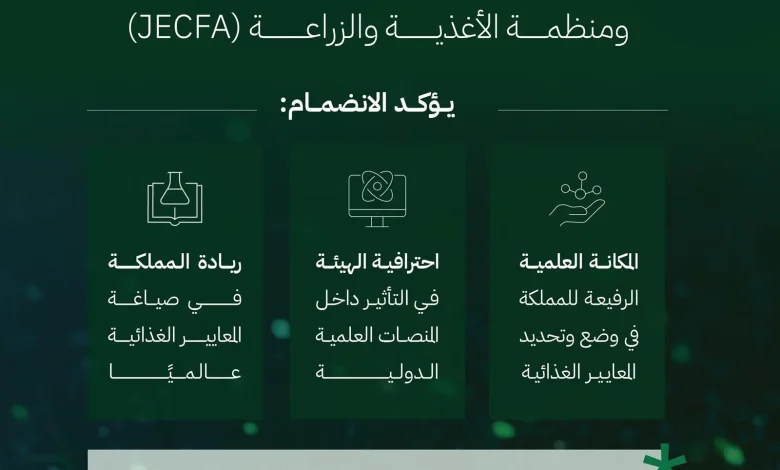 المملكة ممثلةً بـ “الغذاء والدواء” تنضم للجنة دولية تُحدّد معايير المواد المضافة للغذاء