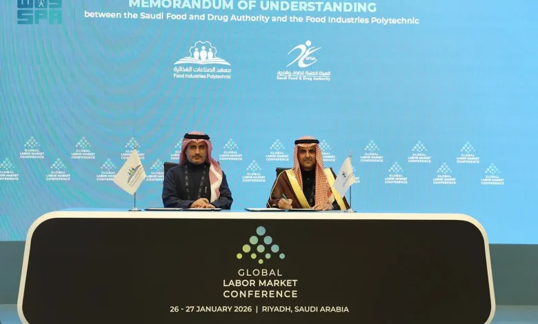 وقّع معهد الصناعات الغذائية مذكرة تعاون مع الهيئة العامة للغذاء والدواء، ضمن مشاركته في أعمال المؤتمر الدولي لسوق العمل 2026، المنعقد في مركز الملك عبدالعزيز الدولي للمؤتمرات بالرياض؛ وذلك بهدف تعزيز التعاون في تدريب وتأهيل الكوادر الوطنية وبناء القدرات البشرية المتخصصة، بما يسهم في دعم استدامة سوق العمل، ورفع مستوى جودة وسلامة صناعة الغذاء في المملكة.
