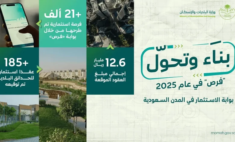 “البلديات والإسكان”: طرح أكثر من 21 ألف فرصة استثمارية وعقود تجاوزت 12.6 مليار ريال خلال 2025