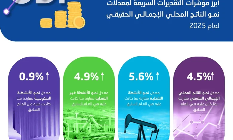 “الإحصاء”: الناتج المحلي الإجمالي الحقيقي ينمو في عام 2025 بمقدار 4.5%