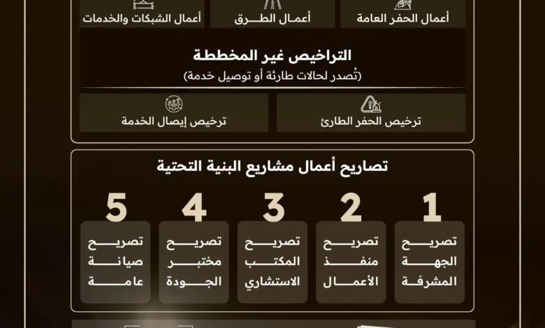 وبيّن أن الضوابط تنظم إجراءات إصدار التراخيص والتصاريح المرتبطة بأعمال مشاريع البنية التحتية، من حيث تحديد أنواع التراخيص المخططة وغير المخططة، وأنواع التصاريح، والاشتراطات اللازمة للحصول عليها، وآليات تقديم الطلبات ومعالجتها وإصدارها وتجديدها، إضافة إلى تنظيم حالات إيقاف التراخيص أو سحبها أو إلغائها، وإجراءات إغلاق التراخيص والمتطلبات الخاصة بالتنسيق المكاني؛ لحماية الأصول وجودة الطرق.