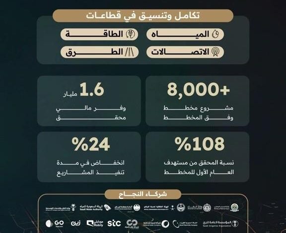 وبيّن المركز أن تطبيق المخطط الشامل أسفر عن حل 9,550 تداخلًا مكانيًا، ومعالجة 82,627 تداخلًا زمنيًا، إضافة إلى حل 436 تداخلًا مع الفعاليات؛ مما أسهم في تقليل التعارضات بين المشاريع، وتسريع وتيرة التنفيذ، وتحسين استقرار الأعمال، والحد من الآثار التشغيلية على الحركة المرورية والأنشطة المحيطة، بما ينسجم مع مستهدفات تنظيم أعمال البنية التحتية ورفع كفاءة تنفيذها في المنطقة.