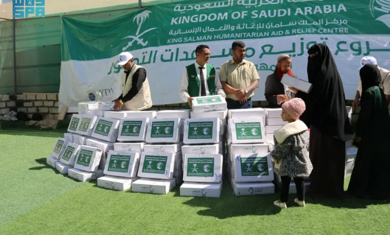 مركز الملك سلمان للإغاثة يوزع 1.800 كرتون تمر في مديرية المدينة بمحافظة مأرب