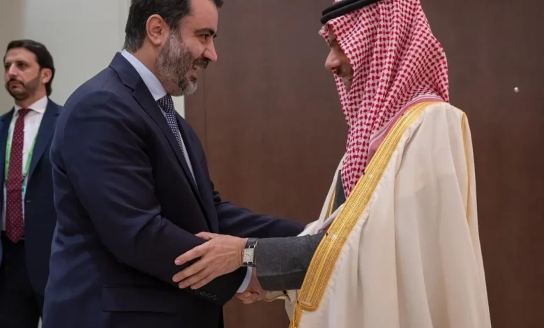 التقى صاحب السمو الأمير فيصل بن فرحان بن عبدالله وزير الخارجية، اليوم، معالي وزير الخارجية والمغتربين بالجمهورية العربية السورية أسعد حسن الشيباني، والوفد السوري المشارك في مؤتمر ميونخ للأمن 2026م، وذلك على هامش أعمال المؤتمر.