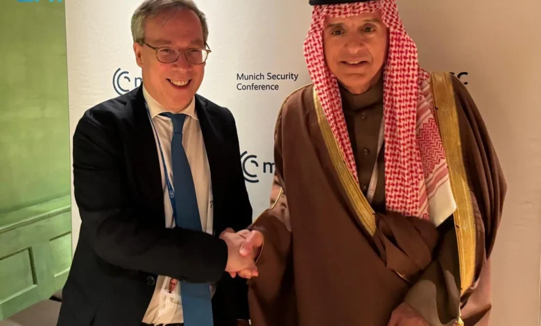 التقى معالي وزير الدولة للشؤون الخارجية عضو مجلس الوزراء ومبعوث شؤون المناخ الأستاذ عادل بن أحمد الجبير، في مدينة ميونخ الألمانية اليوم، المدير العام السياسي في وزارة الخارجية والكومنولث والتنمية بالمملكة المتحدة السيد إدوارد لويلين، وذلك على هامش مؤتمر ميونخ للأمن 2026م.