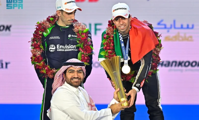 وتوّج معالي نائب وزير الرياضة الأستاذ بدر بن عبدالرحمن القاضي، البرتغالي أنطونيو فيليكس دا كوستا سائق فريق “جاكوار تي سي إس ريسينغ” بالمركز الأول، فيما قلّد صاحب السمو الملكي الأمير خالد بن سلطان بن عبدالله بن فيصل رئيس مجلس إدارة الاتحاد السعودي للسيارات والدراجات النارية، وشركة رياضة المحركات السعودية، السويسري سيباستيان بويمي سائق فريق “إنفيجن ريسينغ” بالمركز الثاني، وأكمل البريطاني أوليفر رولاند؛ سائق فريق “نيسان فوروملا إي” عقد المراكز الأولى بحلوله في المرتبة الثالثة.