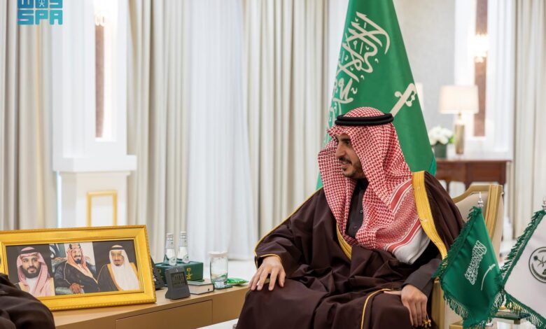 استقبل صاحب السمو الملكي الأمير فيصل بن نواف بن عبدالعزيز أمير منطقة الجوف، في مكتبه اليوم، معالي عضو هيئة كبار العلماء الشيخ الدكتور يوسف بن محمد بن عبدالعزيز بن سعيد، بمناسبة صدور قرار سماحة مفتي عام المملكة رئيس هيئة كبار العلماء، بتكليفه بالفتوى في منطقتي الجوف وتبوك، بحضور مدير عام فرع الرئاسة العامة للبحوث العلمية والإفتاء بمنطقة الجوف الشيخ عيد بن جروان الشمري.