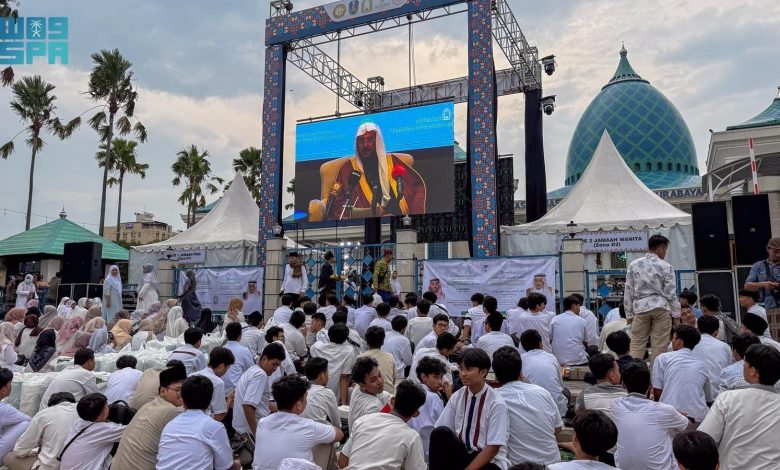 اجتمع أكثر من (21,500) صائم على موائد برنامج خادم الحرمين الشريفين لتفطير الصائمين في الجامع الأكبر بمدينة سورابايا، أحد أكبر الجوامع في إندونيسيا، في صورةٍ جسدت معاني التكافل الإسلامي بأبهى تجلياته.