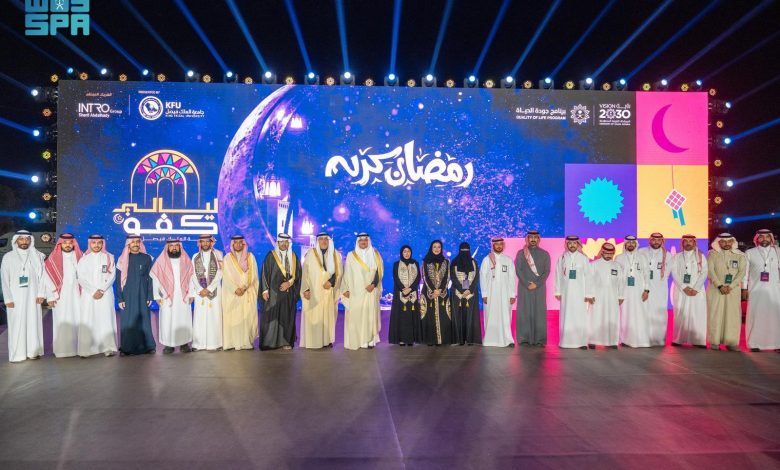 دشّن صاحب السمو الملكي الأمير سعود بن طلال بن بدر محافظ الأحساء, مساء أمس, مهرجان “ليالي كفو 2026” في نسخته الثالثة، والمقام في متنزه الملك عبدالله البيئي، وتنظمه جامعة الملك فيصل, بالشراكة الإستراتيجية مع محافظة الأحساء, وهيئة تطوير الأحساء, وبرنامج جودة الحياة، وبالتعاون مع أمانة الأحساء, والمعهد الملكي للفنون التقليدية, وstc, إلى جانب عدد من الجهات الحكومية والخاصة وغير الربحية.