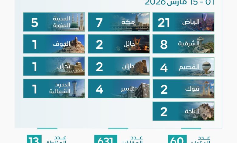 يشرف مركز الإسناد والتصفية “إنفاذ” على إقامة 60 مزادًا عقاريًّا خلال الفترة من 1 إلى 15 مارس 2026م، لبيع 631 أصلًا عقاريًّا متنوعًا ما بين سكني وتجاري وزراعي، موزعة على مختلف مناطق المملكة.