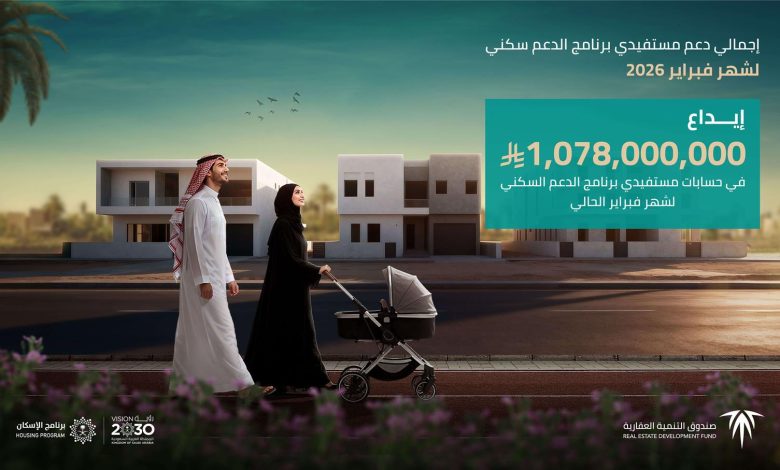 أعلن صندوق التنمية العقارية اليوم إيداع مليار و78 مليون ريال في حسابات مستفيدي برنامج الدعم السكني من وزارة البلديات والإسكان والصندوق العقاري، وذلك عن شهر فبراير 2026م.