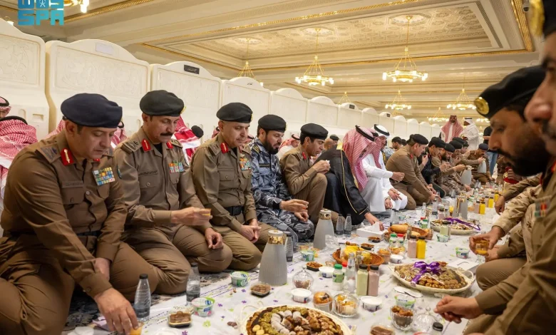 نائب أمير مكة المكرمة يشارك رجال الأمن والجهات المشاركة في خدمة ضيوف الرحمن طعام الإفطار ‏في المسجد الحرام