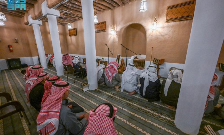 وأوضح إمام وخطيب المسجد إبراهيم بن عبدالله الجلعود، أن المسجد شهد توسعته الثانية عام 1371هـ على نفقة الملك سعود بن عبدالعزيز -رحمه الله-، ثم توسعته الثالثة عام 1391هـ، حيث استُبدلت أعمدة الطين بالحجر، قبل أن يشهد تطويره الشامل عام 1440هـ ضمن المشروع، ليغدو مهيأً لأداء الصلاة واستقبال المصلين في بيئة تجمع أصالة التاريخ ومتطلبات الحاضر.