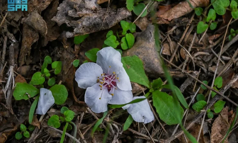 بياض أزهار اللوز يغطي المدرجات الزراعية بالباحة
