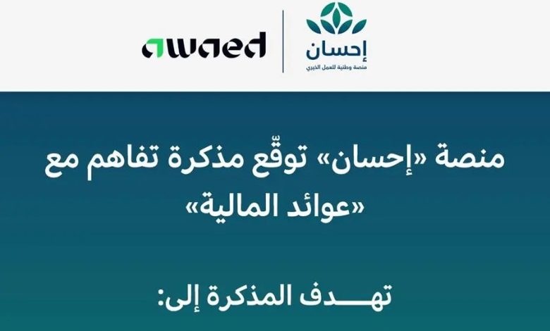 منصة “إحسان” توقع مذكرة تفاهم مع “عوائد المالية” لتمكين التبرع بالأسهم وتسهيل العطاء