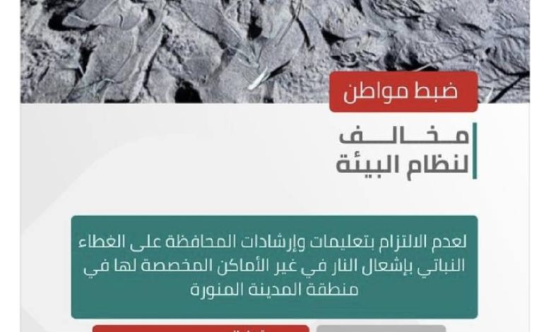 “الأمن البيئي” يضبط مواطنًا مخالفًا لنظام البيئة لإشعاله النار في غير الأماكن المخصصة لها في منطقة المدينة المنورة