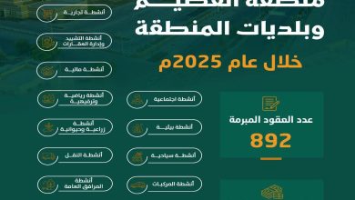 بريدة – واس:أبرمت أمانة منطقة القصيم خلال عام 2025م (892) عقدًا استثماريًا مع منشآت القطاع الخاص على مستوى المنطقة بقيمة…
