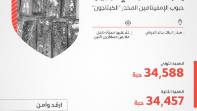 “الزكاة والضريبة والجمارك” تُحبط محاولتي تهريب أكثر من 69 ألف حبة من الإمفيتامين المخدر (الكبتاجون) بمطار الملك خالد الدولي