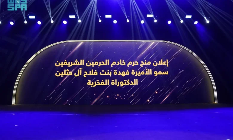 منحَت جامعة الأميرة نورة بنت عبدالرحمن، حَرم خادم الحرمين الشريفين، صاحبة السمو الأميرة فهدة بنت فلاح آل حثلين، درجة الدكتوراه الفخرية في المجال الإنساني والأعمال الاجتماعية؛ تقديرًا لجهودها الاستثنائية في خدمة المجتمع ودعم التعليم، وإبراز دور المرأة التنموي في المؤسسات الاجتماعية بالمملكة العربية السعودية.